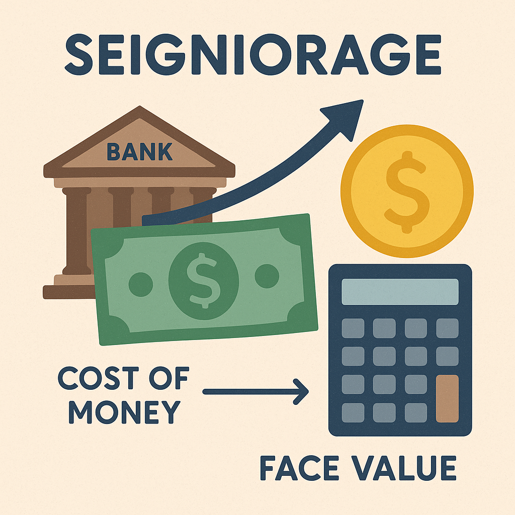 ํ™”ํ ๋ฐœํ–‰์˜ ๋ช…๋ชฉ ๊ฐ€์น˜์™€ ๋ฐœํ–‰ ๋น„์šฉ์˜ ์ฐจ์ต์„ ํ†ตํ•ด ๋ฐœ์ƒํ•˜๋Š” ์ด์ต.